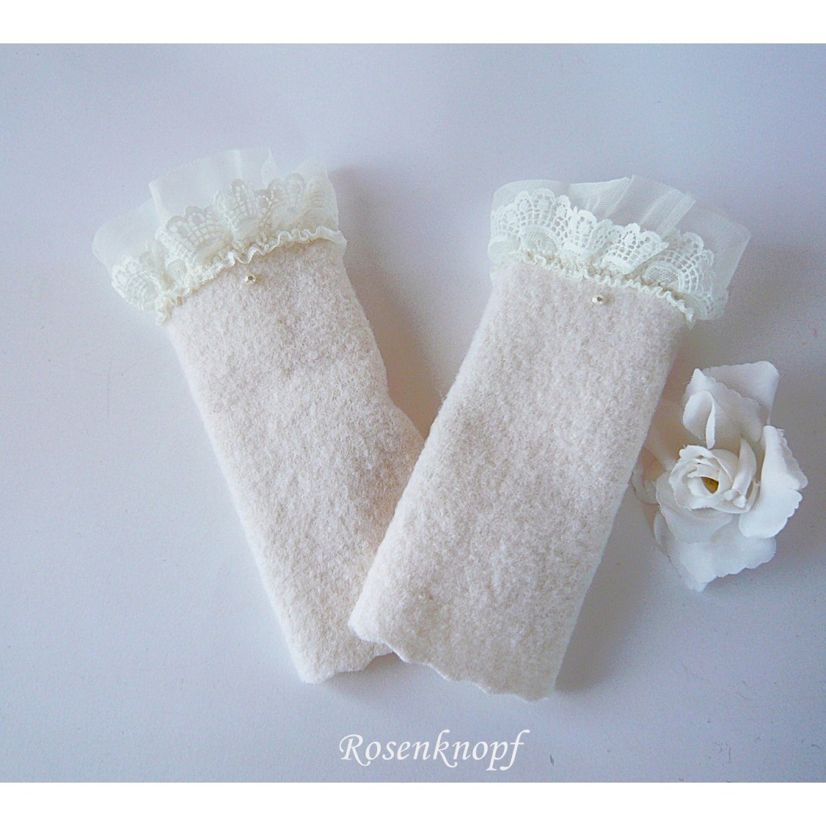 lll➤ Damen Armstulpen/Pulswärmer aus Walk in Ivory zu einer Hochzeit, Standesamt, Fest.