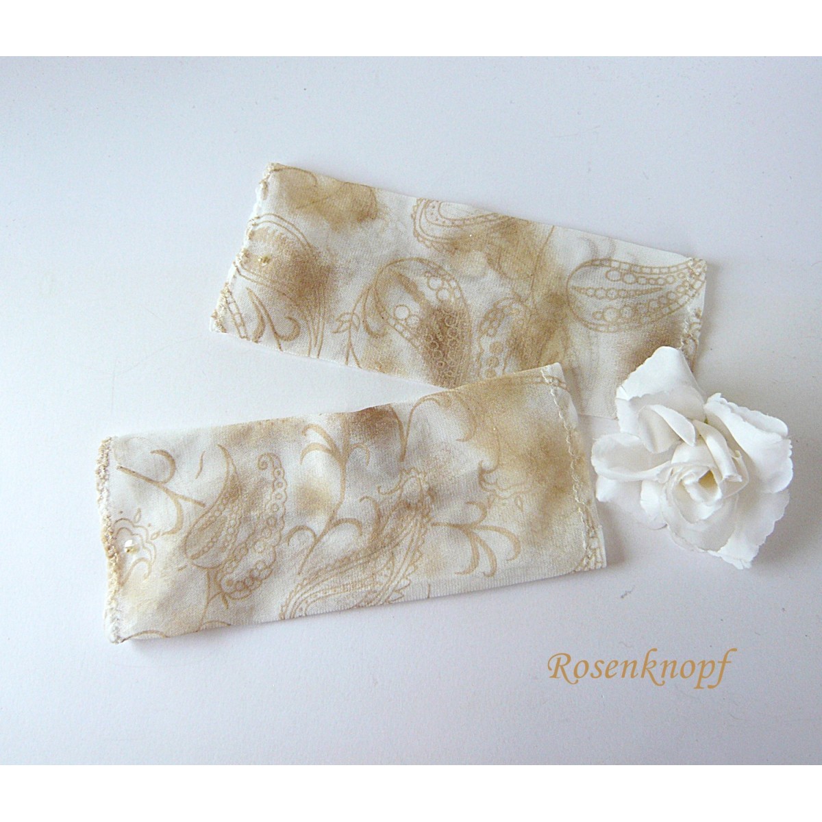 Akzente erhalten die Stulpen die kleine aufgenähte Perle in Ivory.