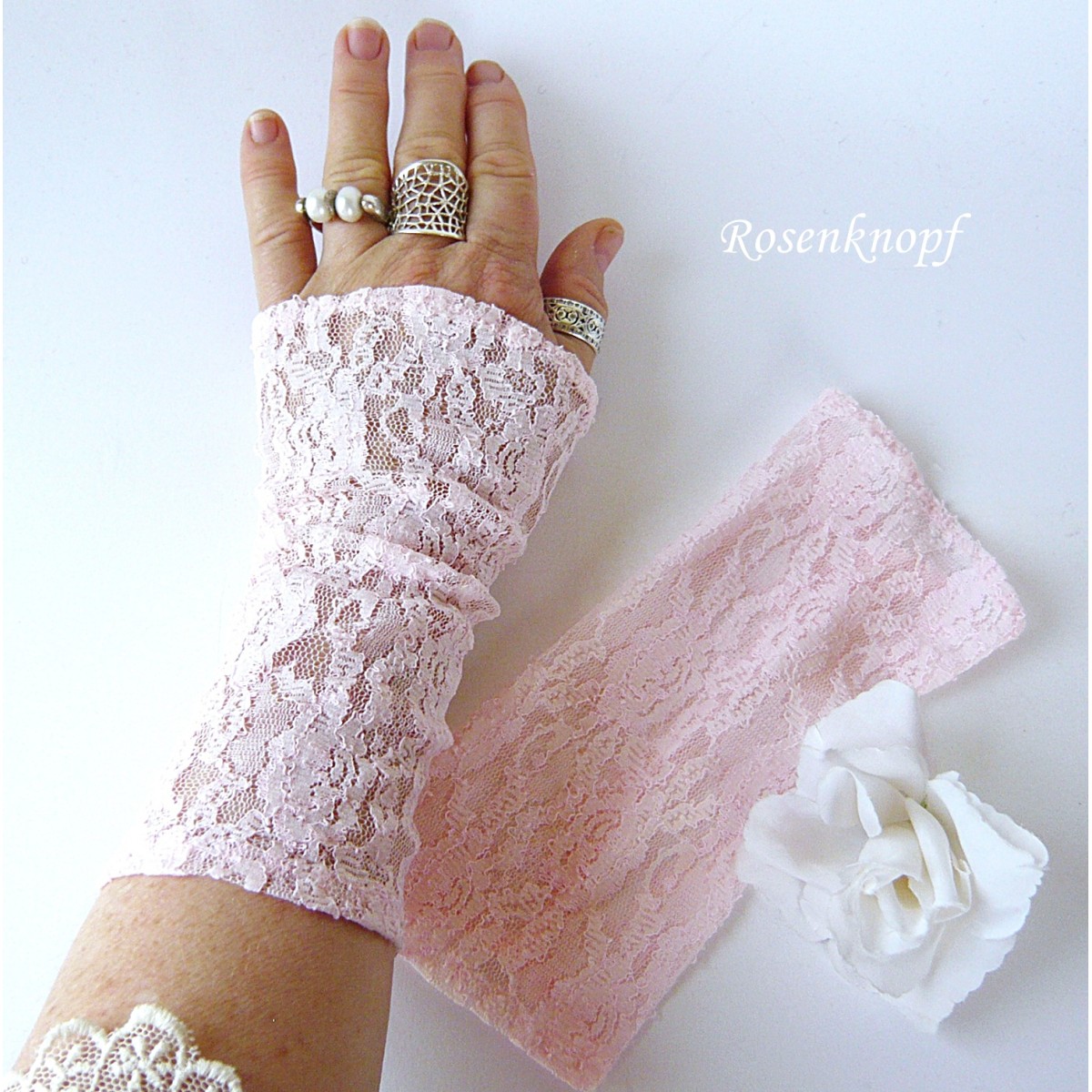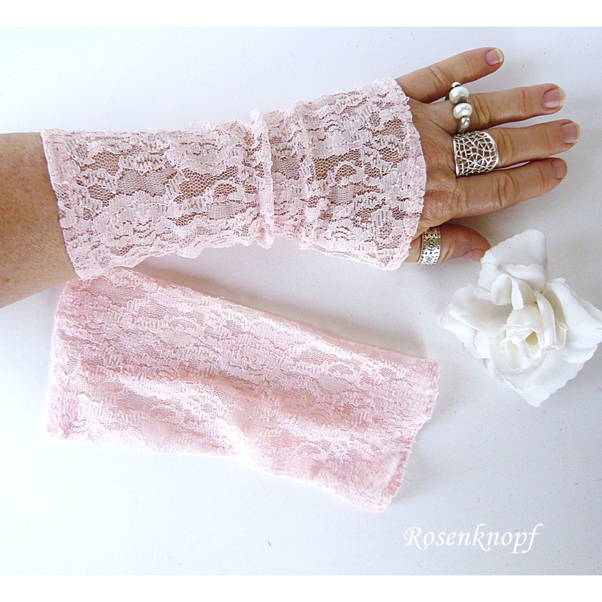 lll➤ Damen Armstulpen/Pulswärmer aus Spitze in Zartrosa zur Hochzeit, Standesamt oder Fest.