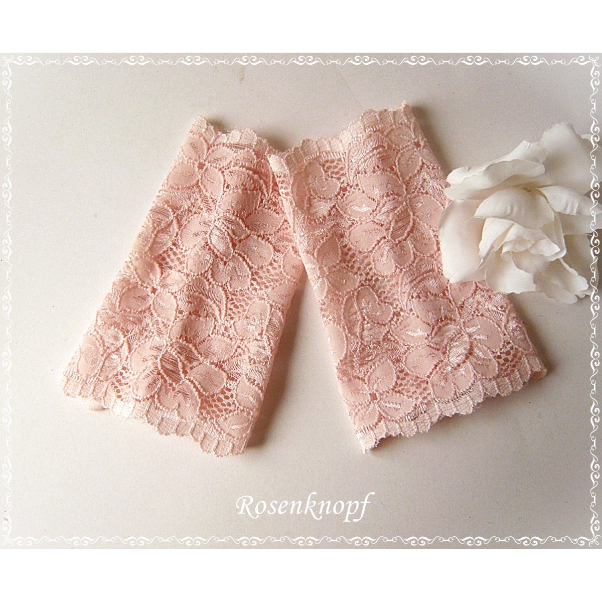 Romantische Damen Armstulpen/Spitzenstulpen aus wunderschöner elastischer Spitze mit floralem, seidenglänzendem Muster in zartem Apricot.