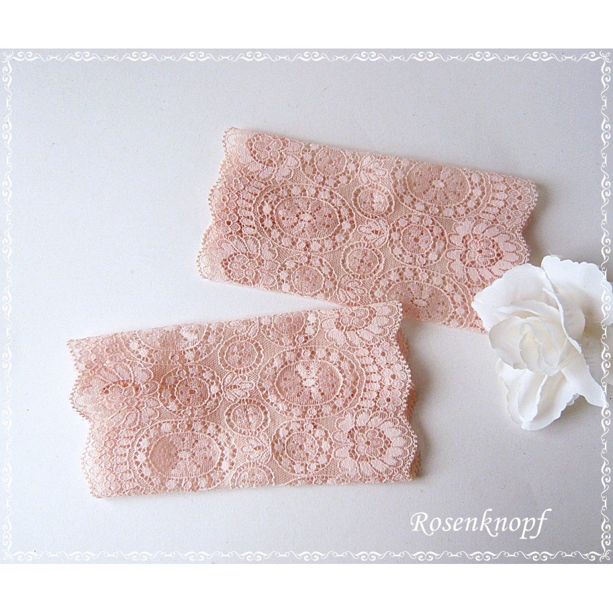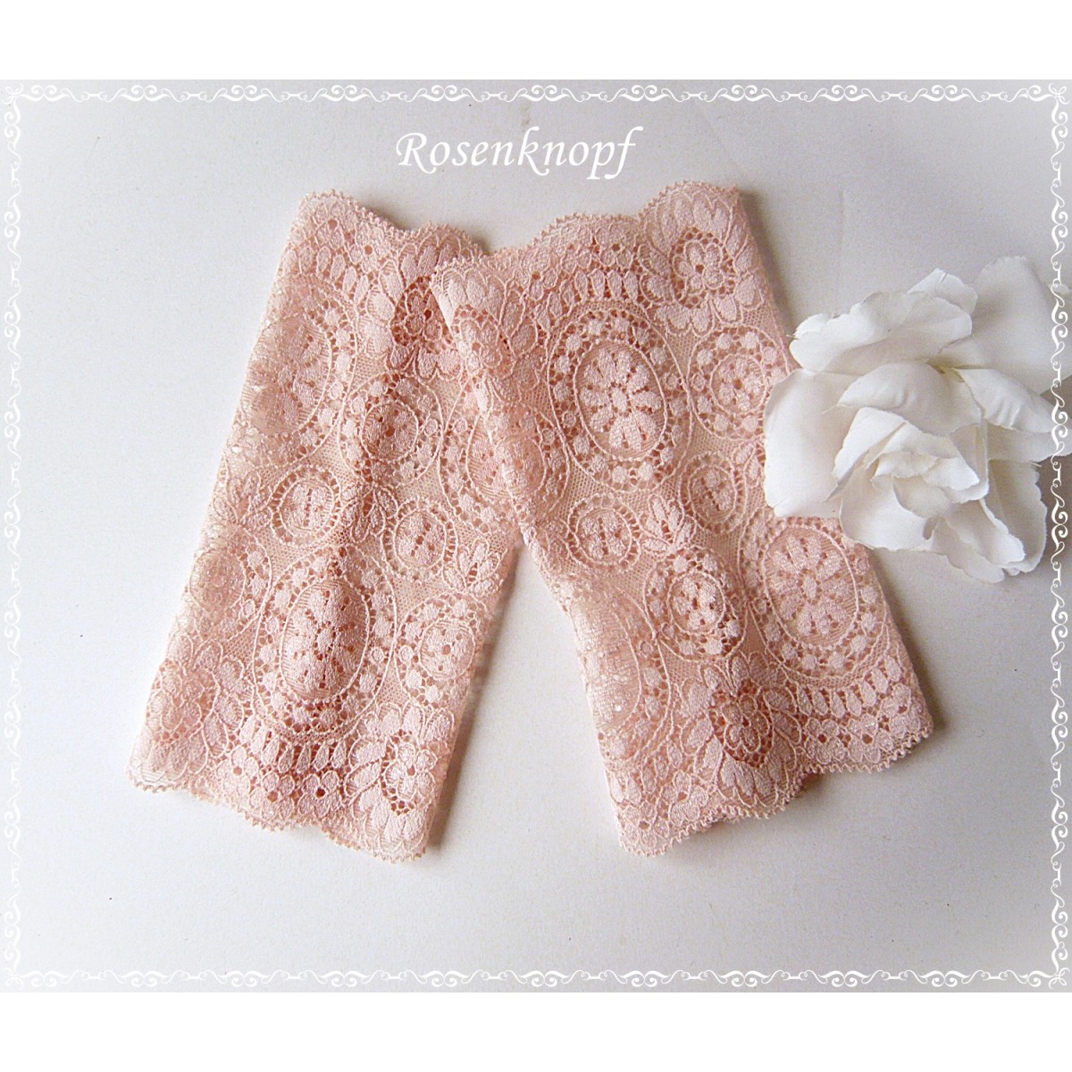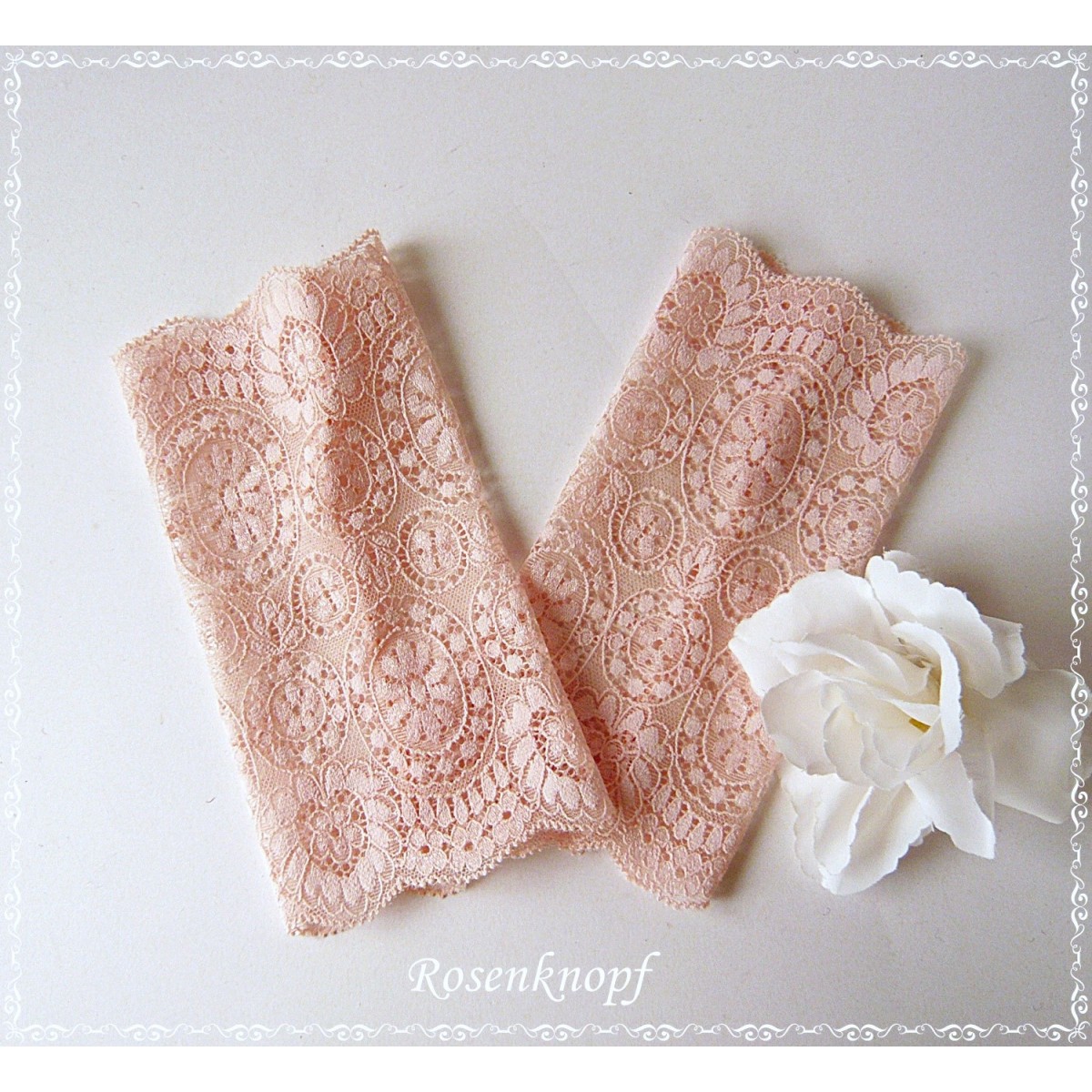 Romantische Damen Armstulpen/Spitzenstulpen aus wunderschöner elastischer Spitze mit floralem, seidenglänzendem Muster in zartem Apricot.