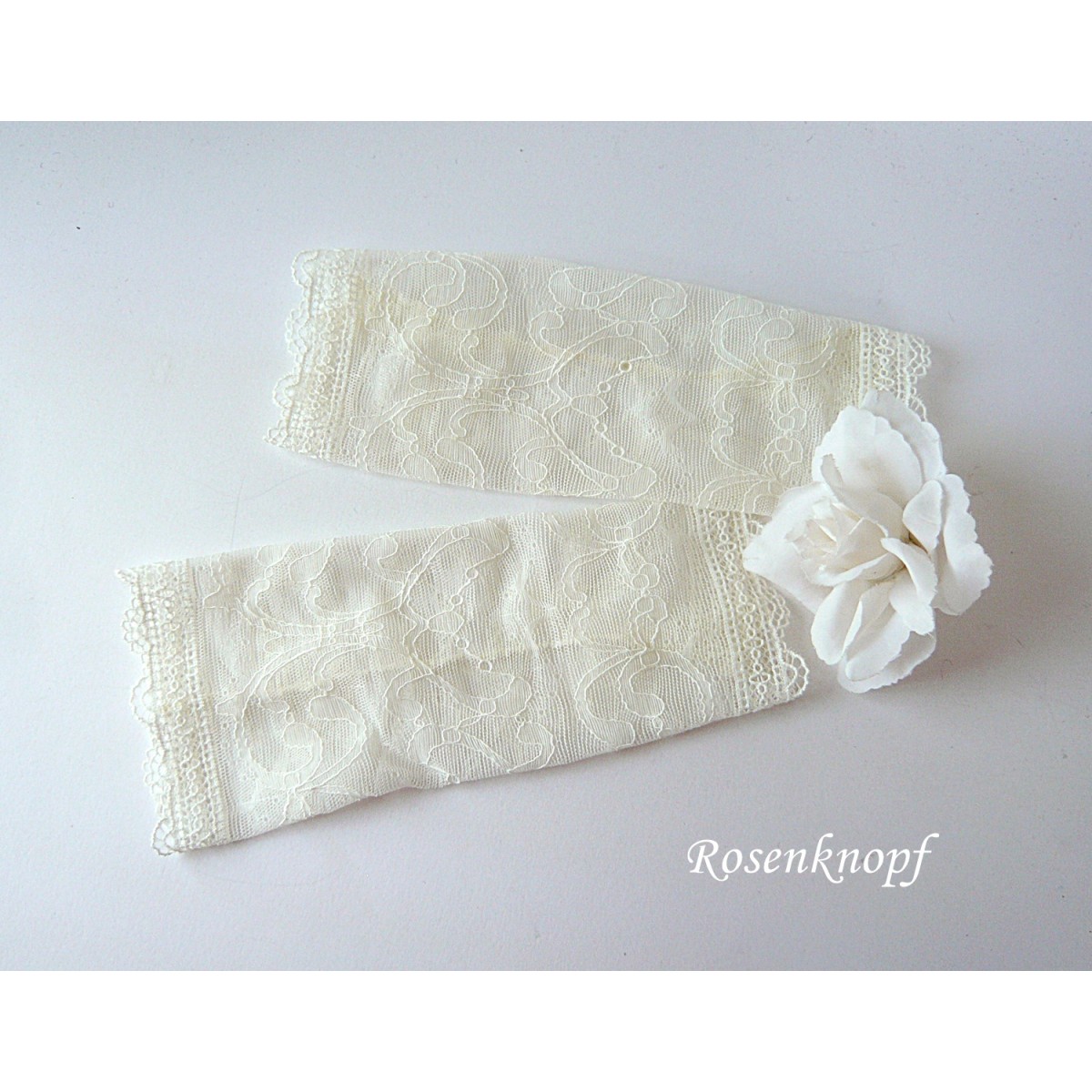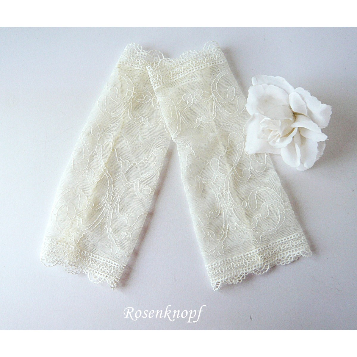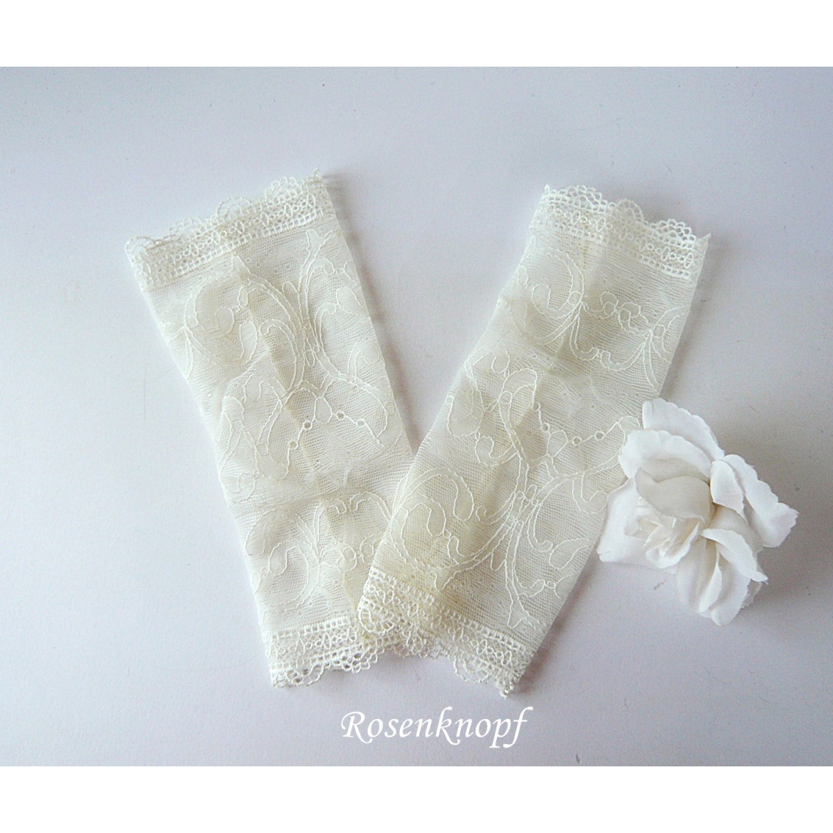 lll➤ Extra lange feine Damen Armstulpen/Pulswärmer aus Tüllspitze in Cremeweiß/Ecrue für eine Hochzeit, Standesamt oder Fest.