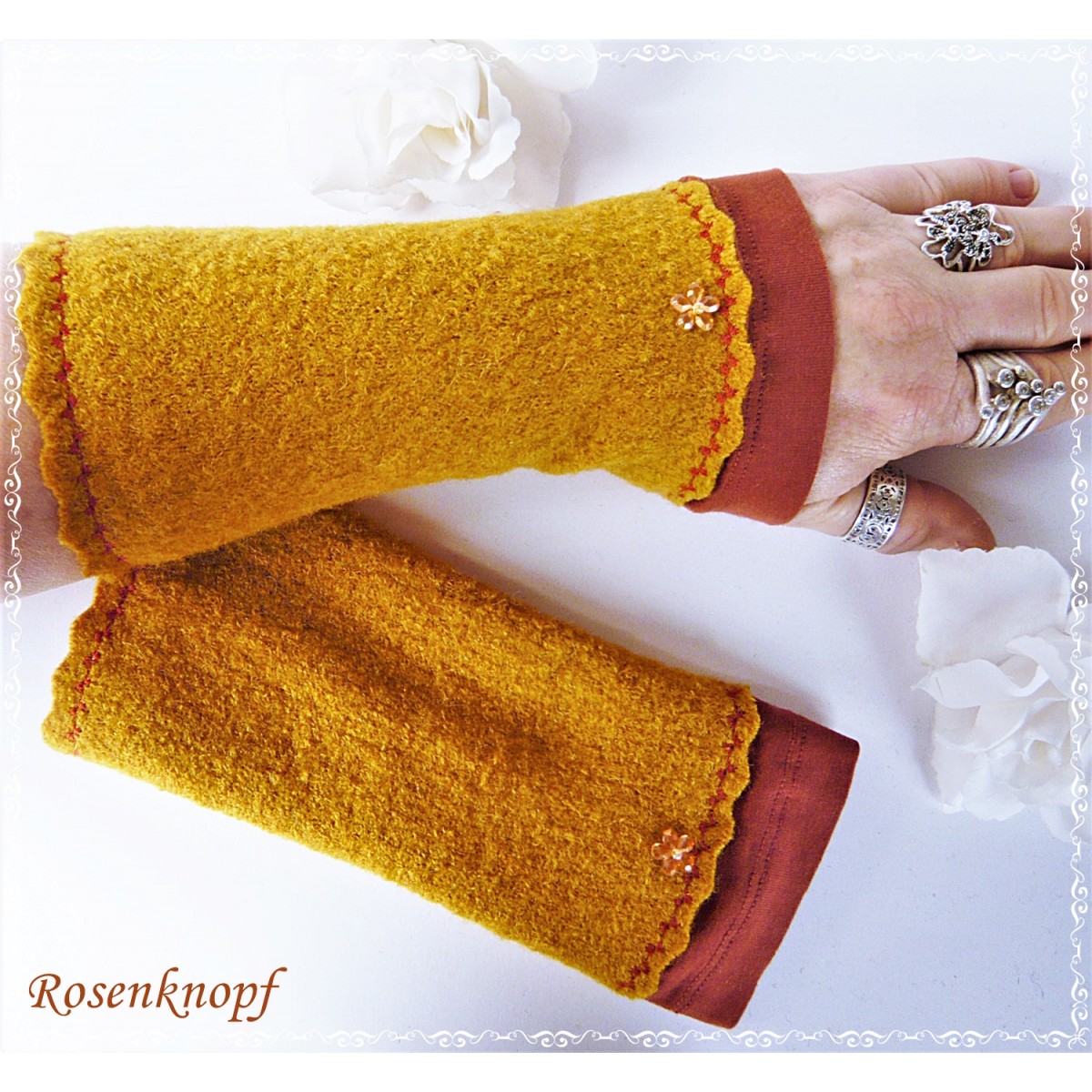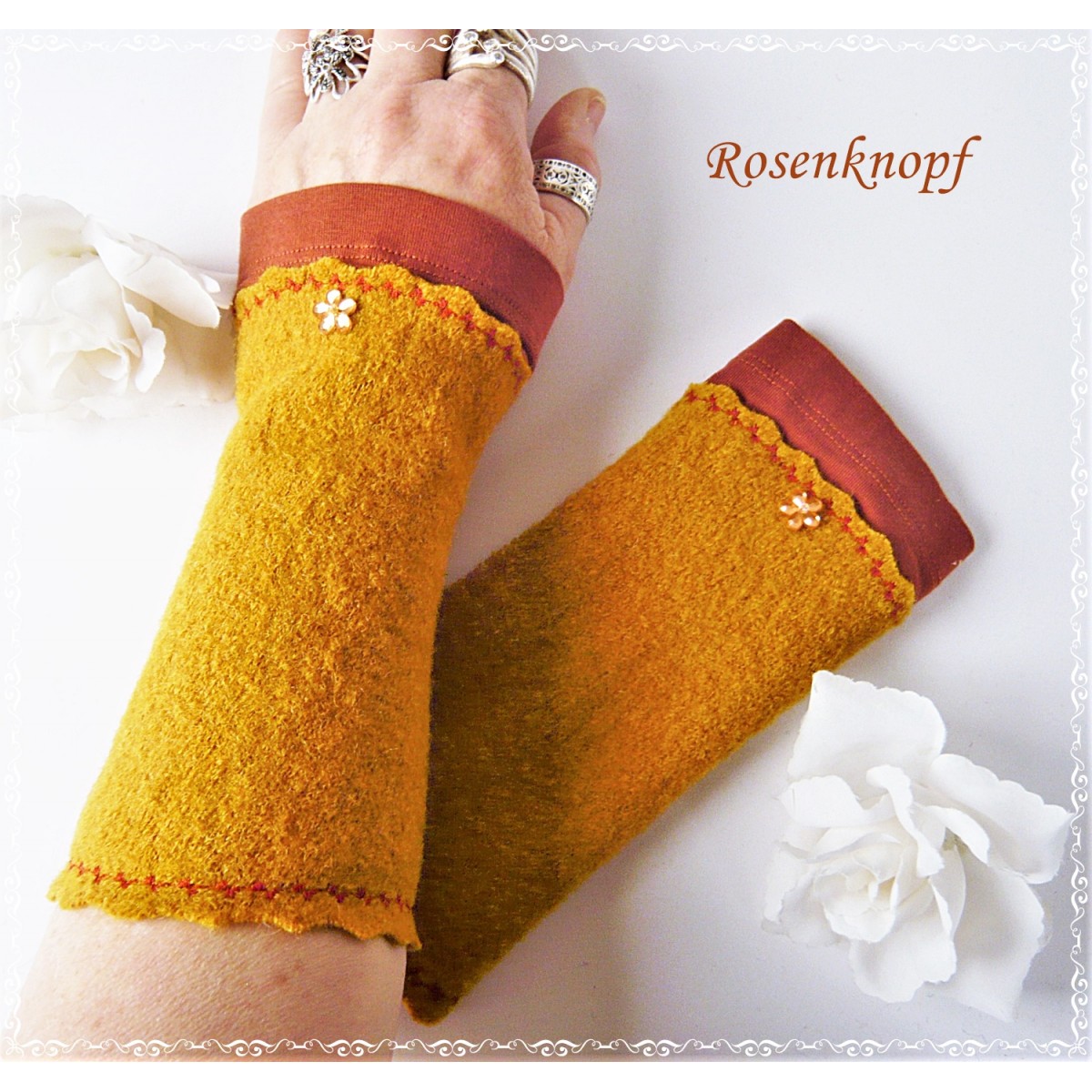 Diese Handstulpen wurden von mir entworfen und genäht und sind nur in meinem Shop erhältlich.