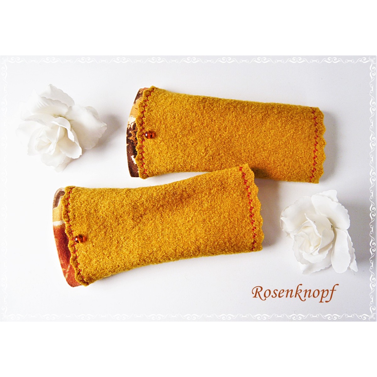 Ansprechende und zeitlose Armstulpen/Pulswärmer die aus hochwertigem Walk in Ockergelb gefertigt wurden.