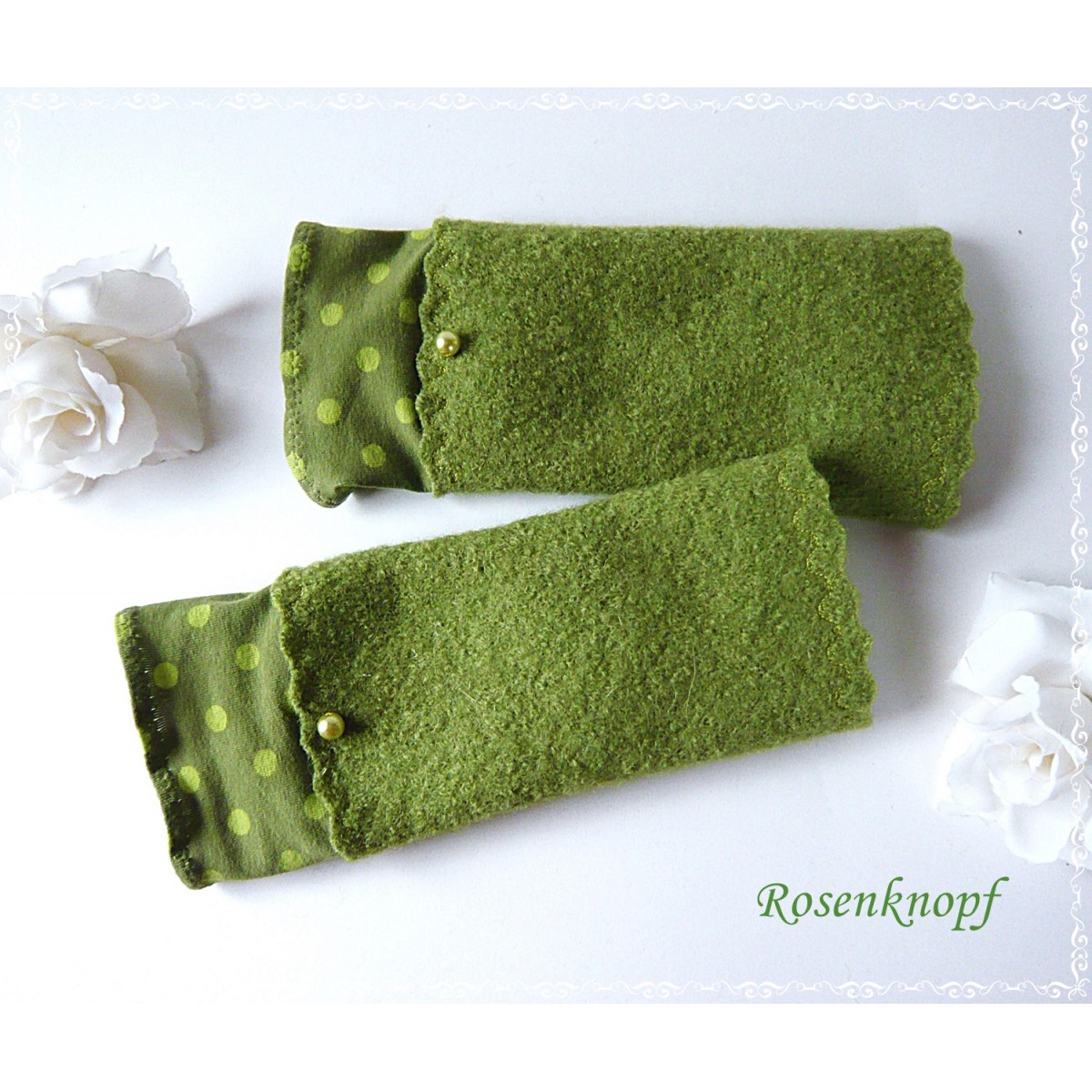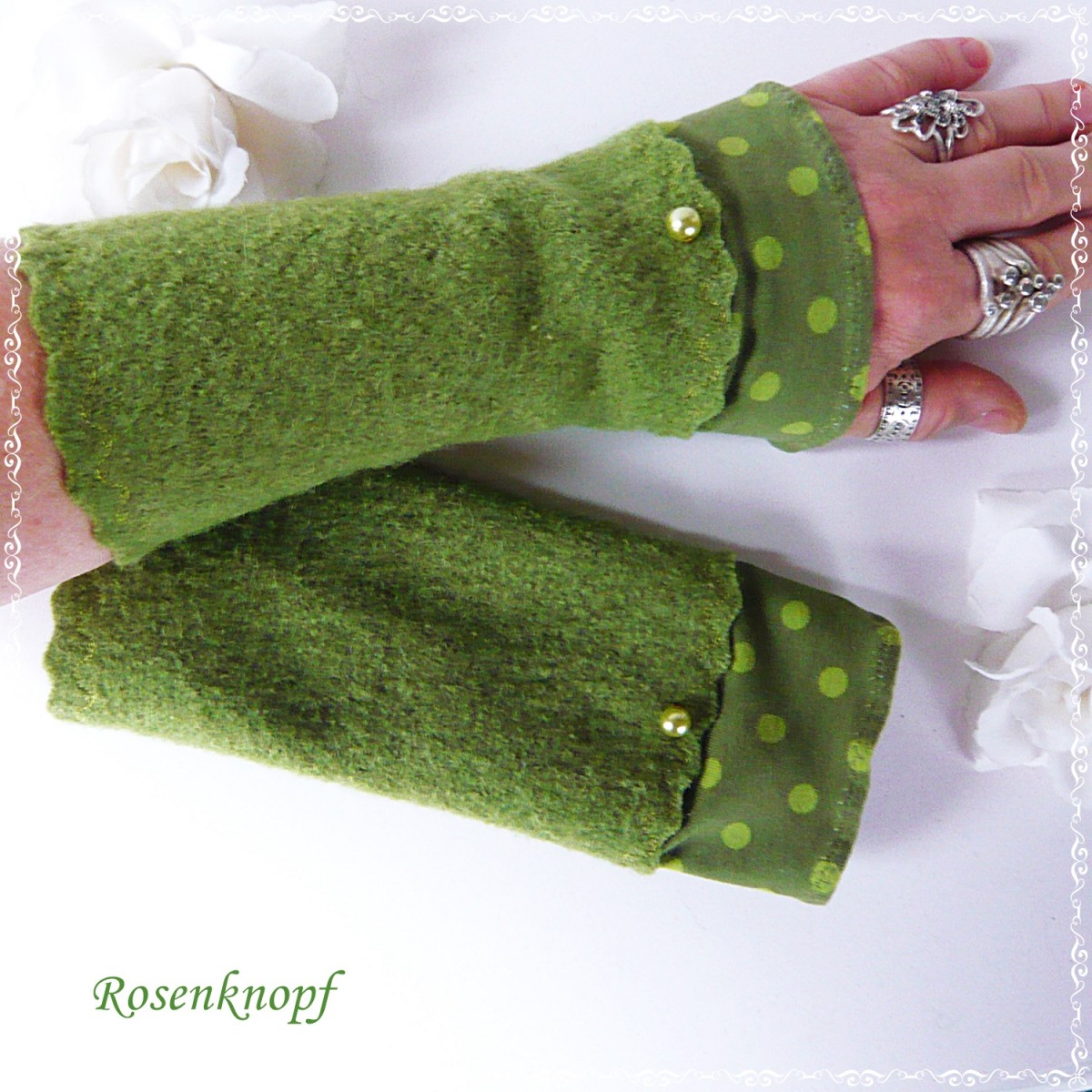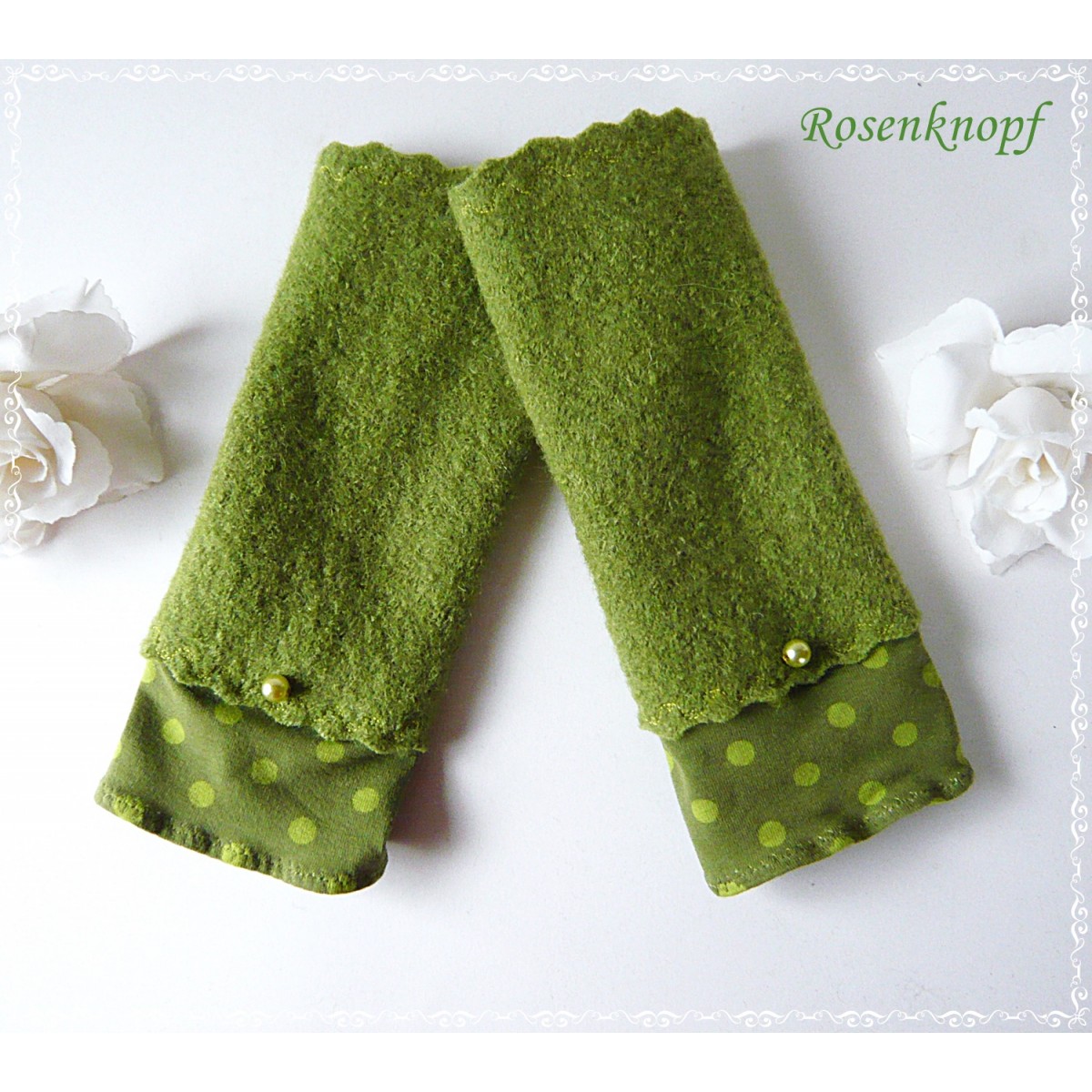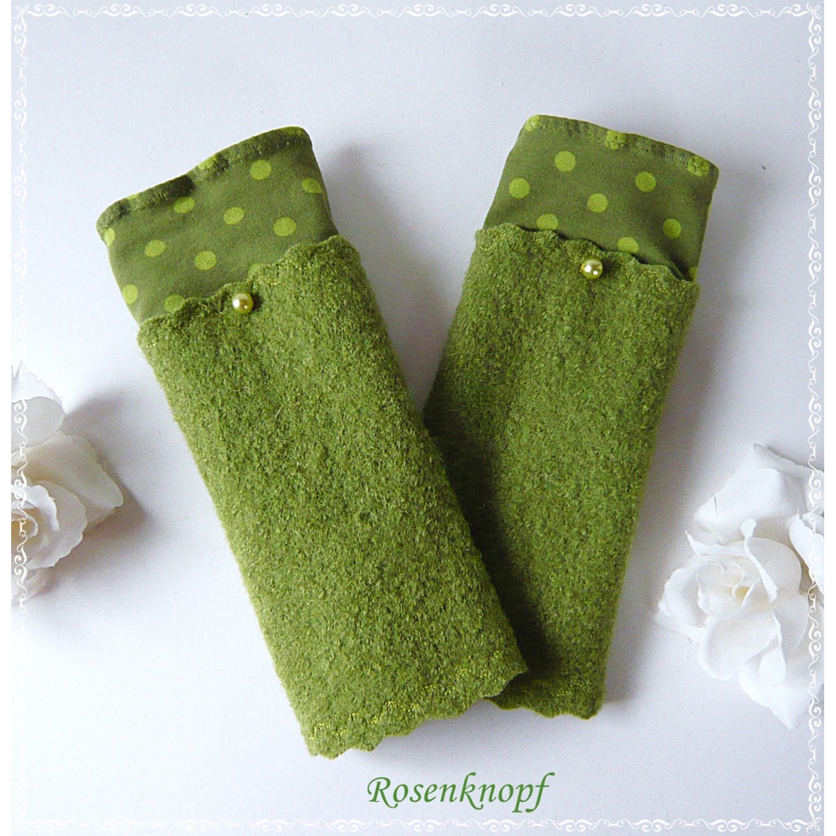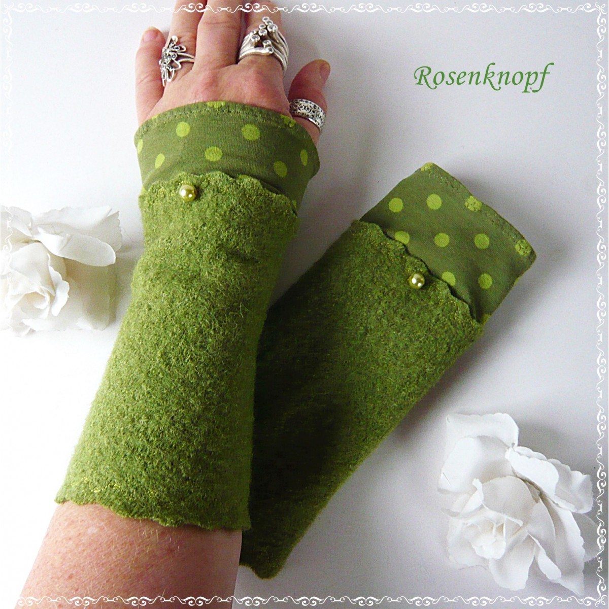 Elegante und zeitlose Armstulpen, Pulswärmer aus Walk in Grasgrün für viele Gelegenheiten.