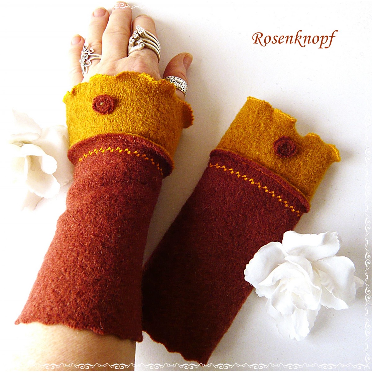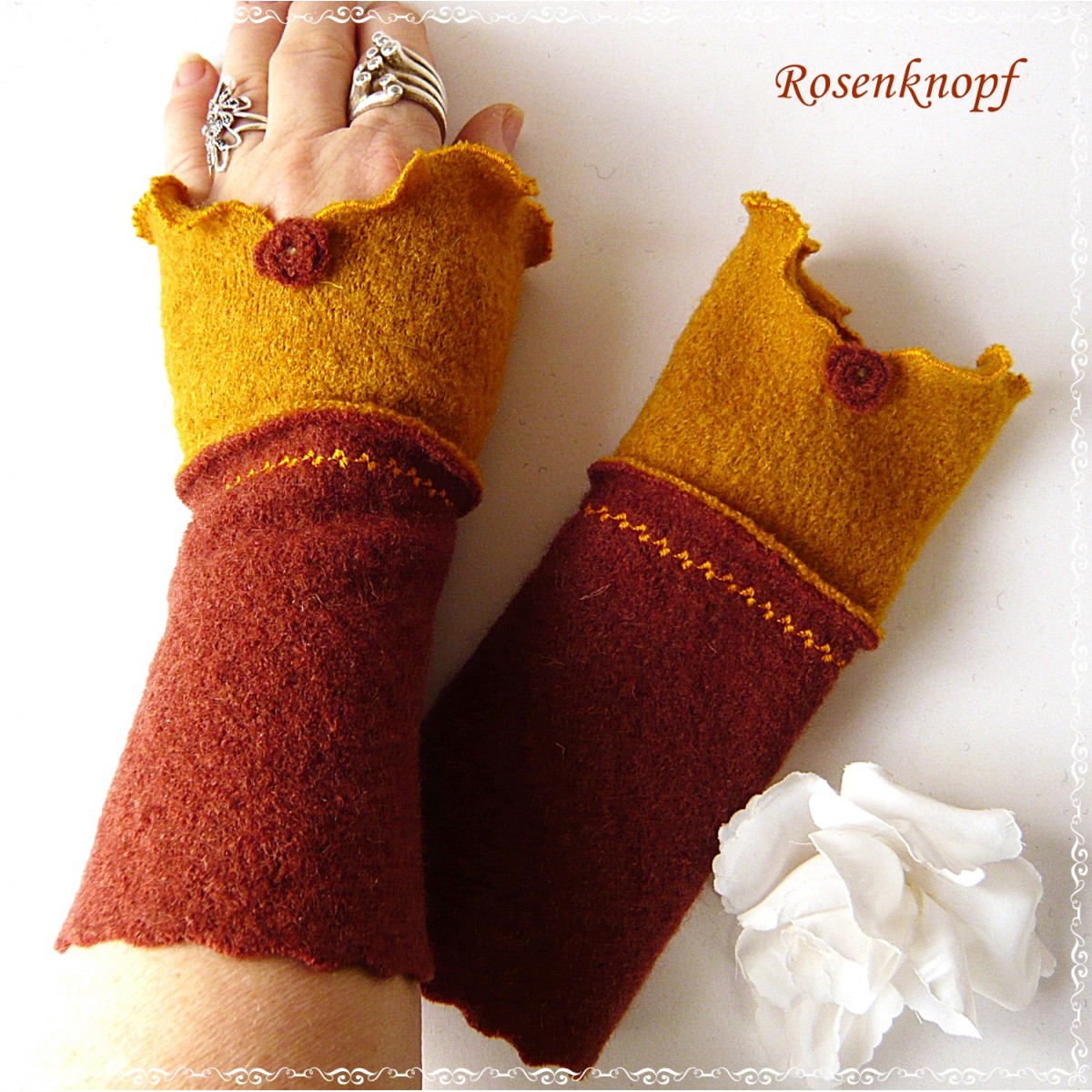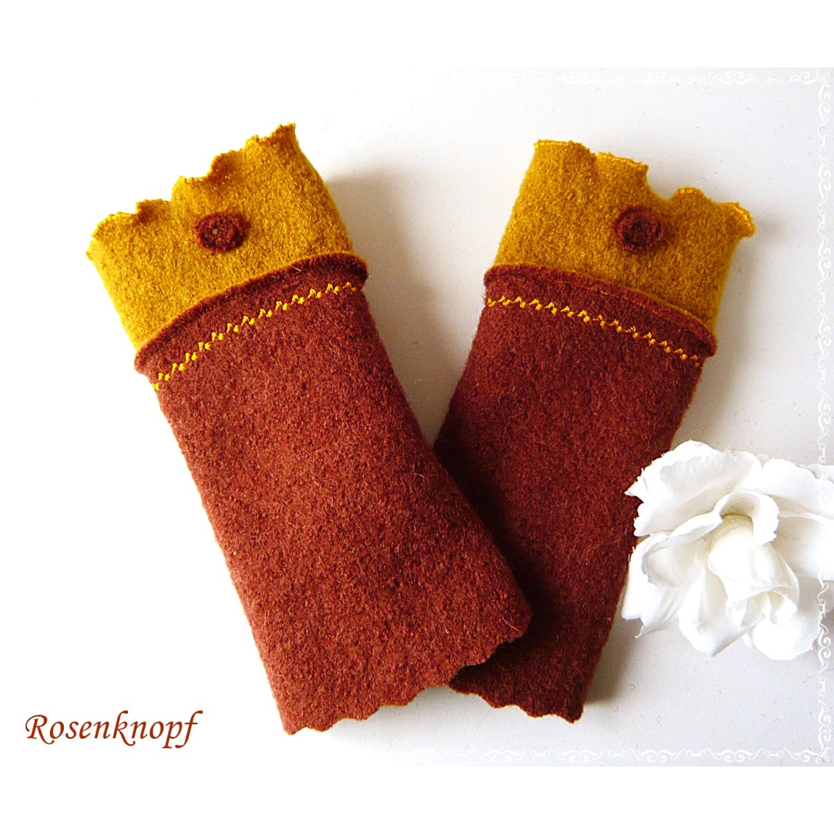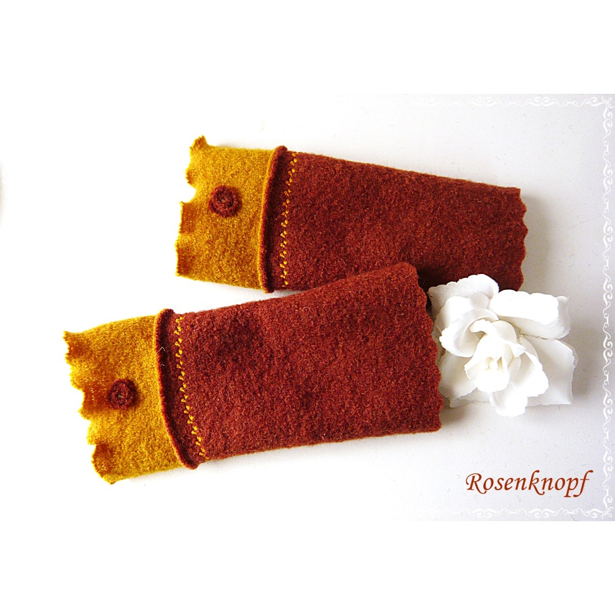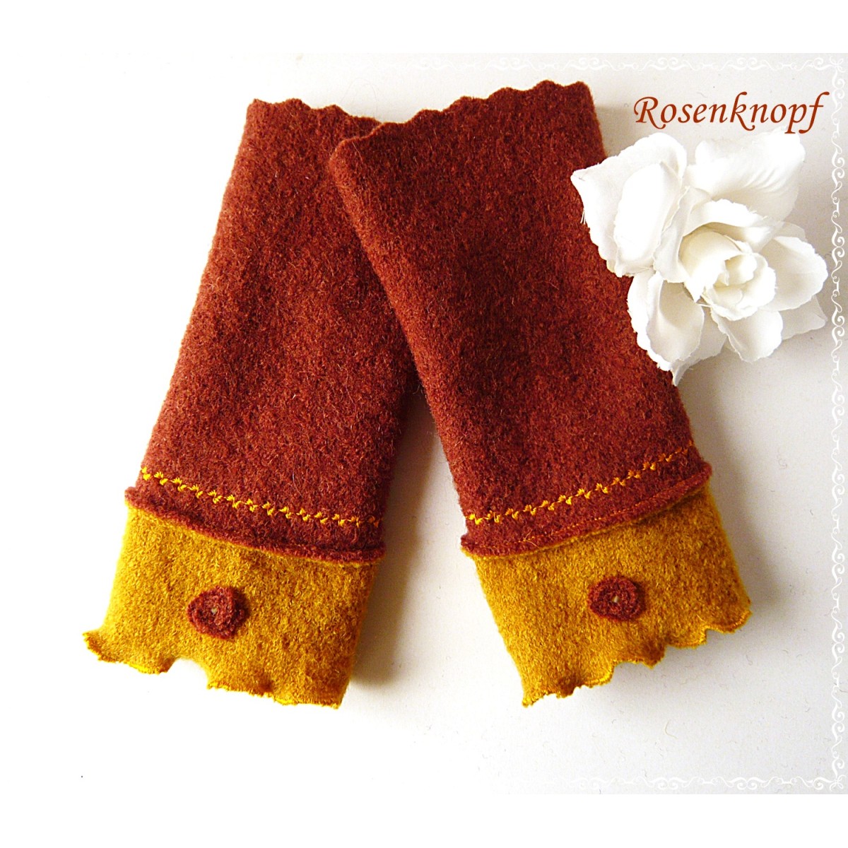lll➤ Damen Armstulpen/Pulswärmer aus Walk in Terra und Ocker.